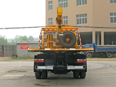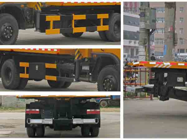 托舉質(zhì)量:3800kg;裝備SQ5S起重機,自重1650Kg,起吊質(zhì)量5000Kg;隨底盤選裝駕駛室, 防護材料:Q235A碳鋼,連接方式:左右側(cè)面防護裝置與大梁焊接連接;后部專用裝置與后防護干涉,, 故后防護豁免。 | ||