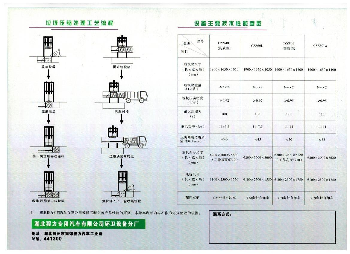 5. 設(shè)有垃圾儲存箱,適合集裝箱式散裝垃圾運輸車卸料,減少運輸費用。