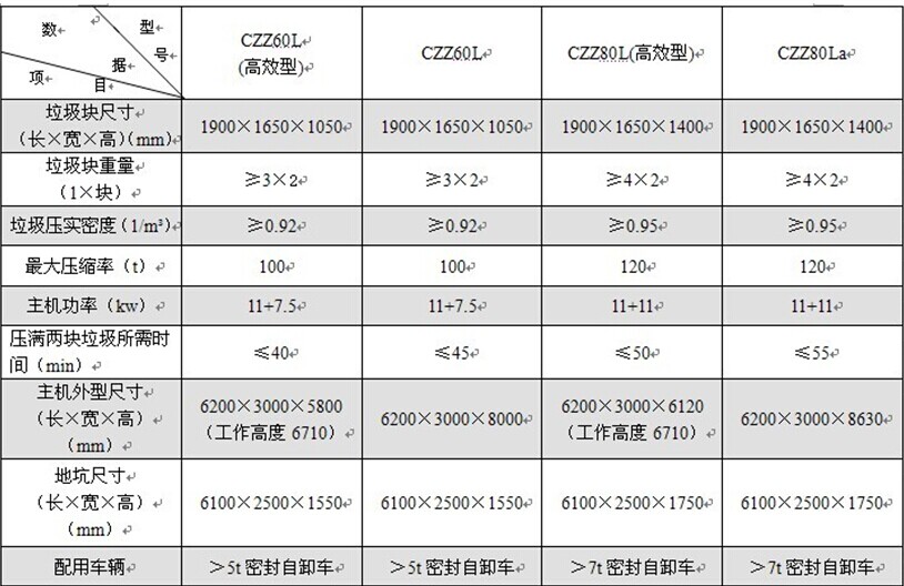 2.采用垂直壓縮方式,壓縮力大,垃圾塊壓實密度大。