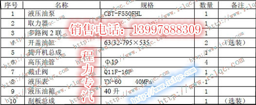 程力專汽自裝卸式(掛桶式)垃圾車主要配件明細表清單: