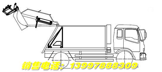 卸垃圾:則將垃圾斗體通過(guò)液壓裝置舉起,使用推鏟將垃圾推出,完成垃圾卸料。
