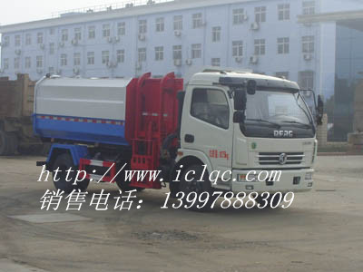 東風(fēng)多利卡掛桶式垃圾車(chē)自裝料裝置:自裝料裝置設(shè)在箱體的前部側(cè)面,由支架、油缸、鏈條結(jié)構(gòu)、吊鉤等組成。此裝置可將外部垃圾桶內(nèi)的垃圾提升裝入箱體內(nèi)。