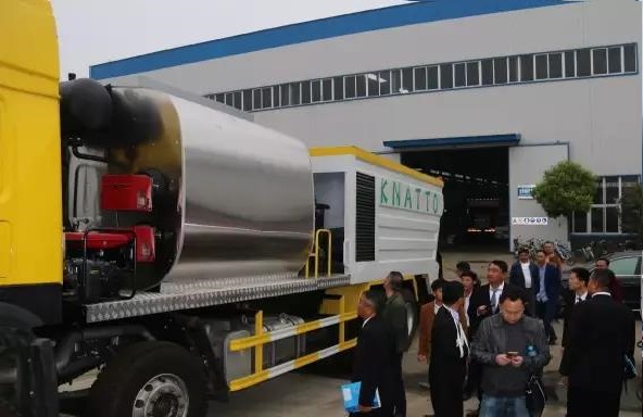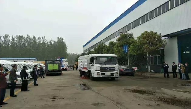 緬甸外賓團(tuán)成員興致盎然地觀摩掃地車(chē)試車(chē)效果