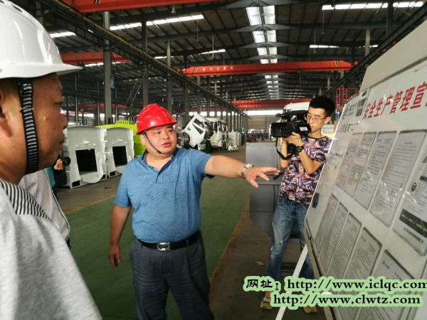 在生產(chǎn)車間的管理看板前,程總興致勃勃地向檢查組介紹情況,安全工作重在全員參與。