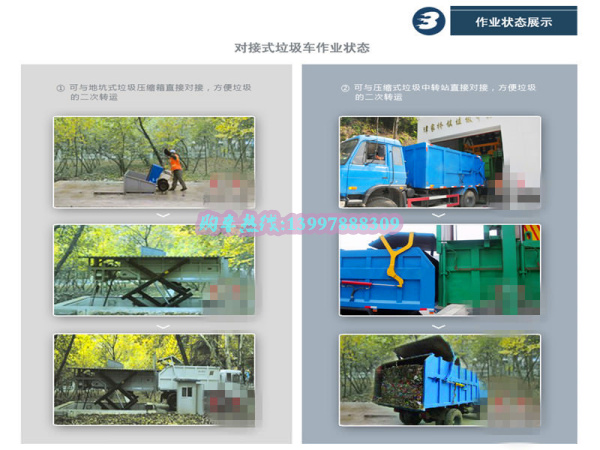 對接式垃圾車的組成與作業(yè)狀態(tài)詳細圖解